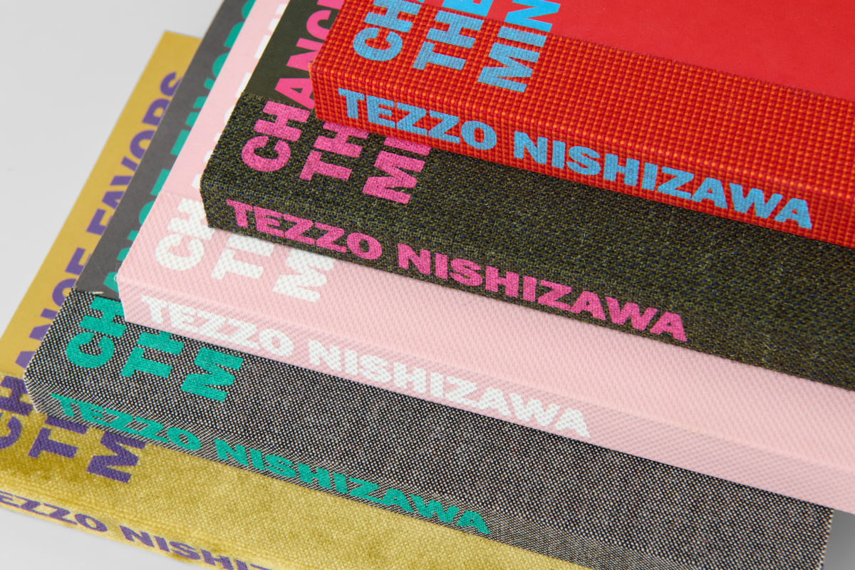 表紙のデザインは、5種類の特装版と1種類の通常版に分かれています。特装版では背部分に布地が用いられ、その素材に合わせたカラーが表紙にも反映されています。この布地は、centre Inc.が廃盤品として安価に購入し保管していたものであり、偶然にも西澤氏が設計した建築で使用されていたことが契機となっています。複数の残反の中から、西澤氏が設計において使用頻度の高いカラーが選ばれ、それらを基調として装丁がまとめられていったのです。機能を持った個別のふるまいが、全体の構成を立ち上げていくように造本設計へと反映されるこの行為は、西澤氏の建築におけるプロセスとも深く共鳴し、形作られていきました。